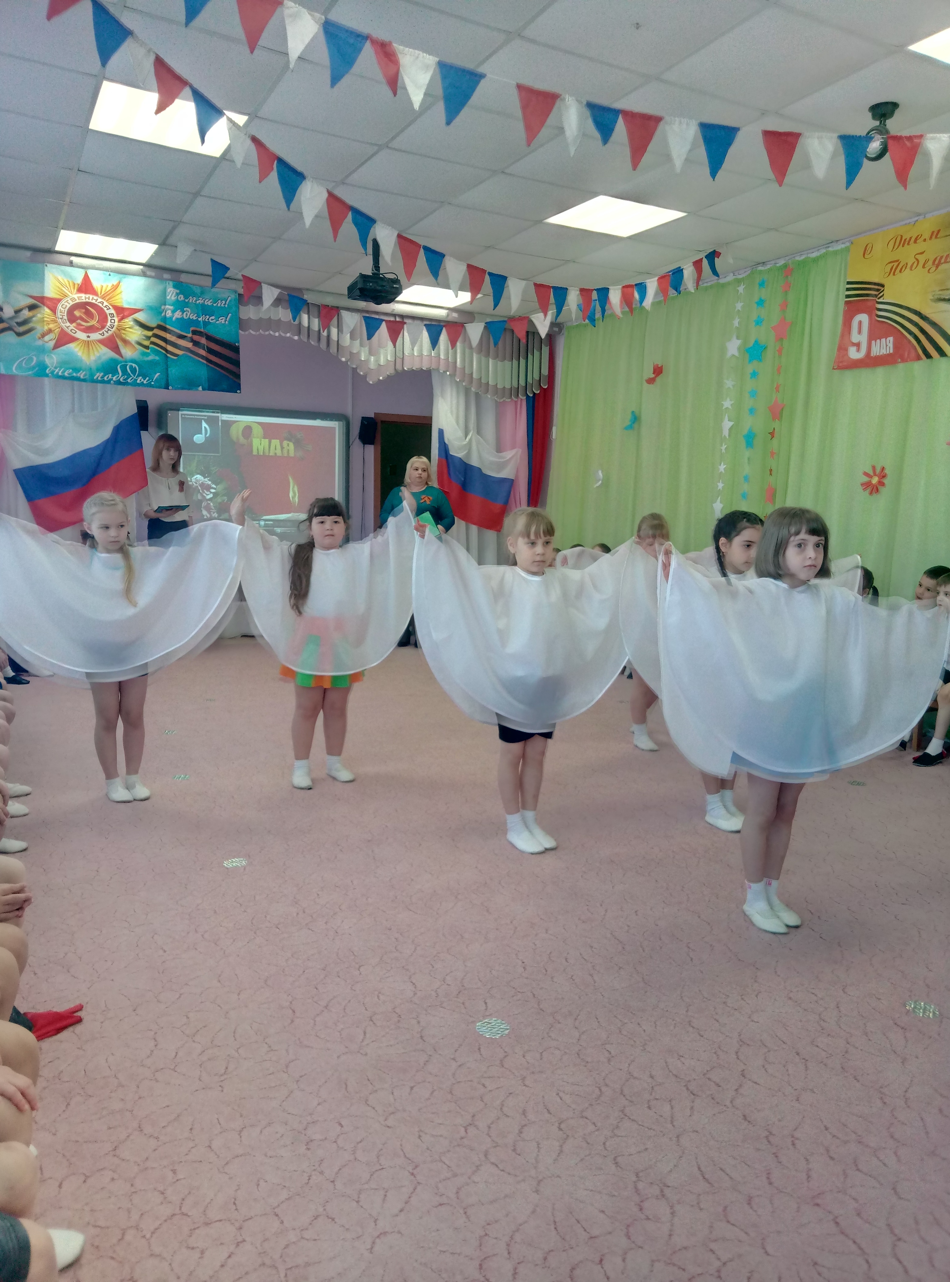 8 МАЯ старшие и подготовительная к школе группа приняли участие в праздничном концерте: пели военные песни, танцевали и показывали свою ловкость в соревнованиях по военной тематике.