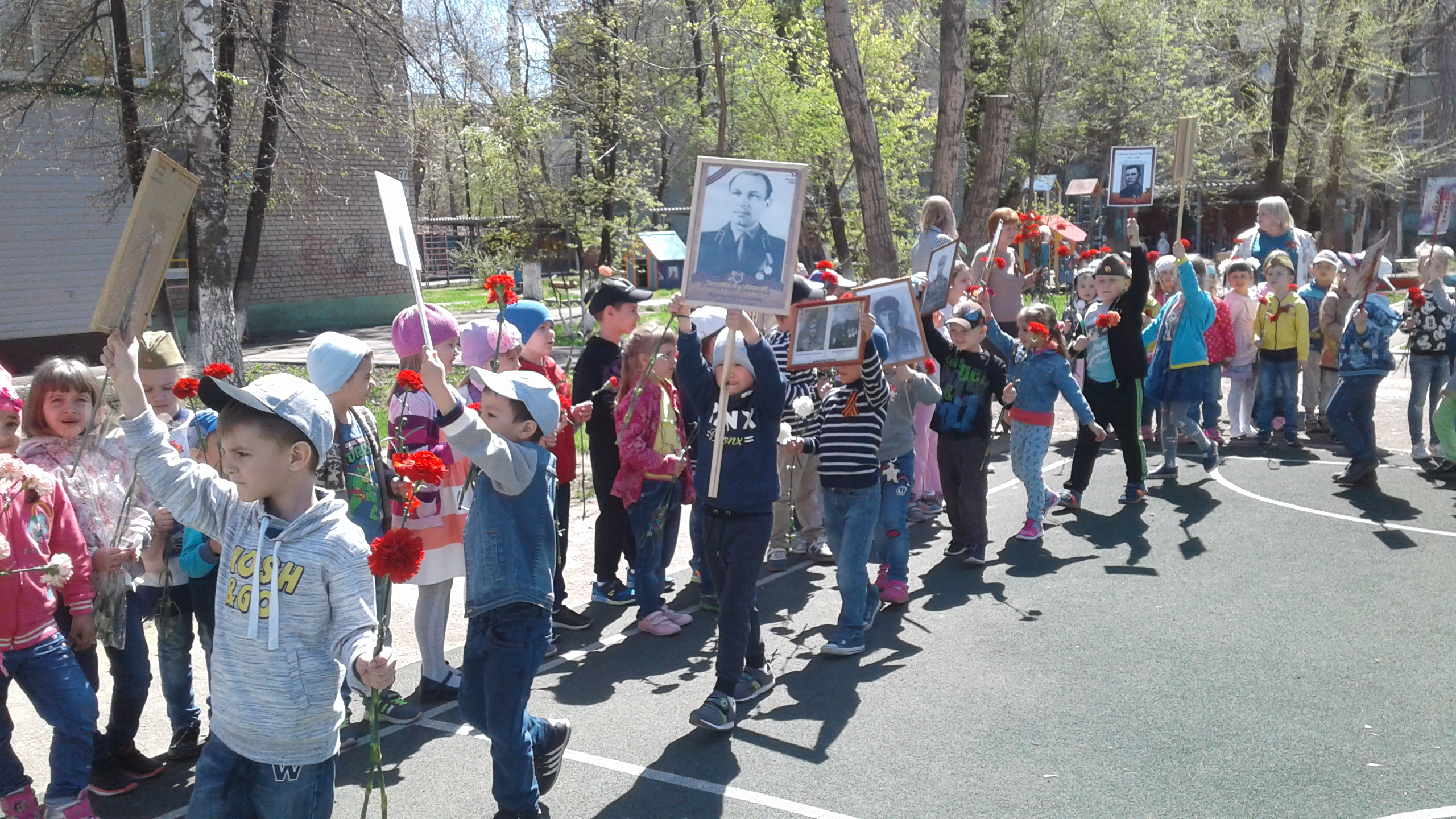 Также впервые в детском саду прошла Всероссийская акция "Бессмертный полк". Дети прошли с портретами своих прадедов и Героев Советского Союза г. Самары по территории сада. Видео-отчет