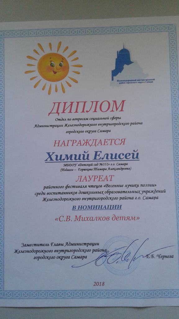 25 АПРЕЛЯ в детском саду № 297 прошёл II тур районного фестиваля чтецов "Весенние лучики поэзии". От нашего детского сада выступал воспитанник старшей группы "Ромашка" Химий Елисей. Он блестяще исполнил стихотворение С.В. Михалкова "Грипп" и стал лауреатом конкурса. Поздравляем тебя, Елисей!"