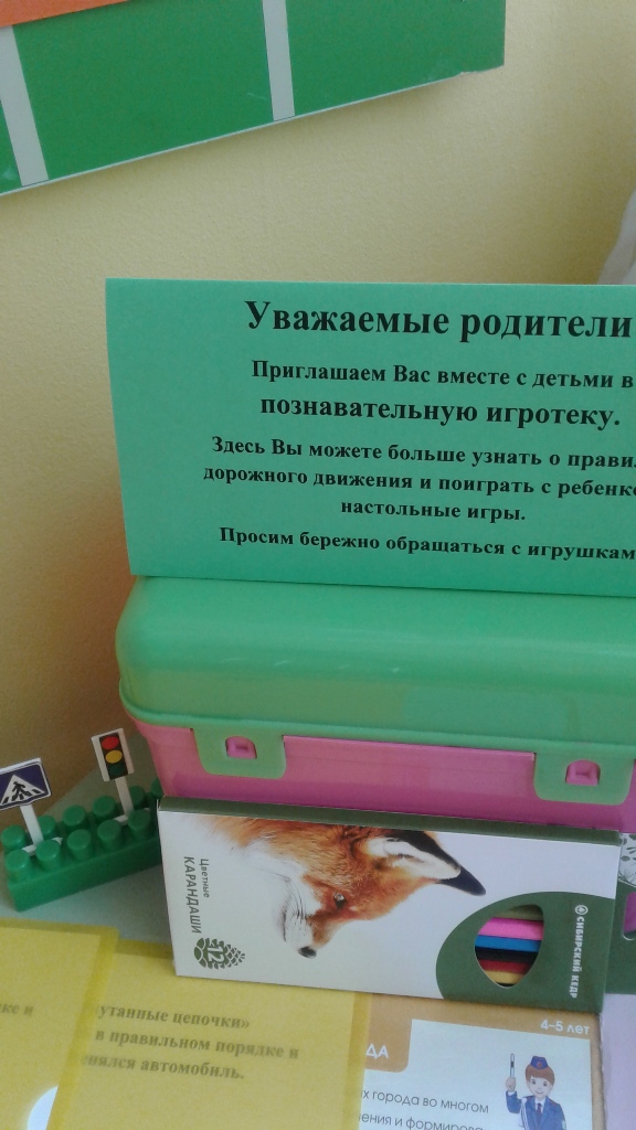 В нашем детском саду открылась "Познавательная игротека". Приглашаем родителей с детьми разучить и повторить правила дорожного движения!