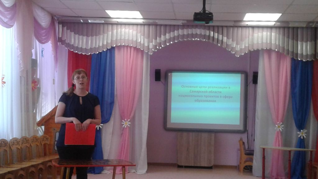23 и 24 апреля в рамках педагогического совета и общего родительского собрания старший воспитатель Сидорова О.Н. познакомила педагогов и родителей воспитанников с целями и задачами национальных федеральных проектов "Образование" и "Демография".